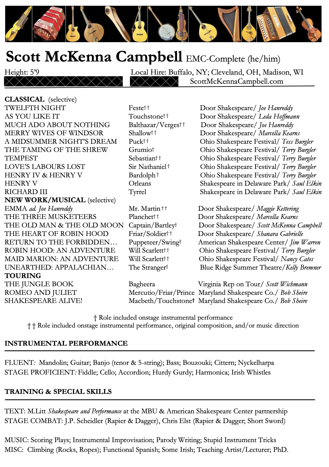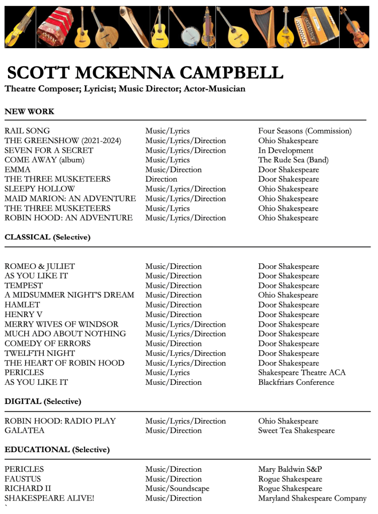 Creative Résumés University Lecturing and Teaching Artist Resumes available by request. Stage Acting Music Composition & Direction